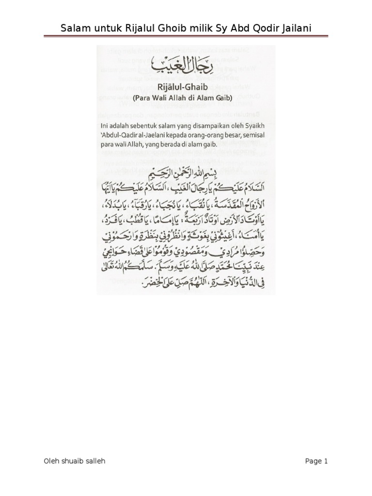 Amalan Doa Rijalul Ghaib
